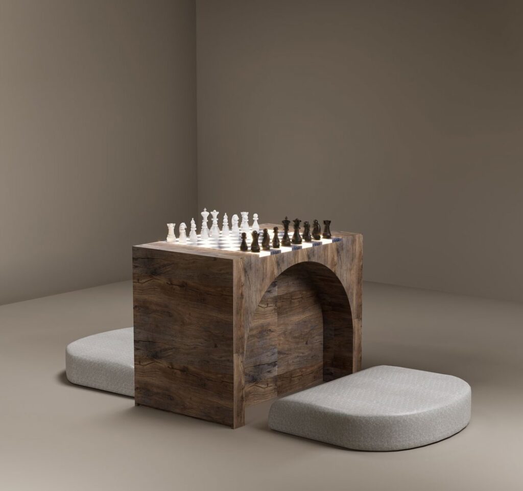 At the heart of the piece was a built-in chessboard, which invited people to pause, sit, and engage. A removable cushion, made from locally produced cotton fabric and repurposed foam, introduced comfort and versatility, allowing ReSeat to shift easily from stool to table to storage. Its low, compact proportions encouraged grounding and closeness, fostering the kind of informal interactions that bring people together.